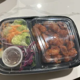 chicken and vegetables in a plastic container