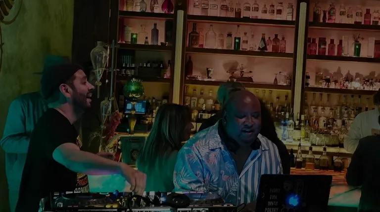 I can't believe I have never been there! What a lovely gem of a place "hidden" by the bridge in DTLA. And there's a parking lot nearby. Yes the drinks are pricey and there's no food available, YET there's such a chill, pretty vibe that feels like an oasis to enjoy and escape to for a proper cocktail.We got there early on. Thursday. Bouncer was welcoming. The entryway faces the bar directly and while it seems small, it's joined by an outdoor courtyard.
