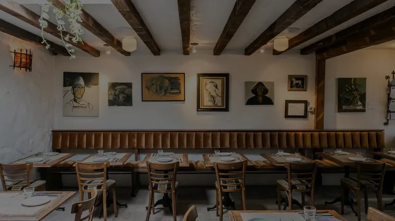 Came here on a Monday evening with some girlfriends for a dinner before the holiday break. We made a reservation on OpenTable and were sat immediately. Our server was quick to bring us tap water we requested and had some suggestions for the wine selection.We ended up going with a Sauvignon Blanc from New Zealand for the table. For food, we ordered two pizzas (smoked mushroom, Asian pear and Brie), stuffed mushrooms, burrata caprese, little gem salad, beef cheek, pork belly, scallops, and sea bass.The kitchen paced out our food very nicely. It didn't feel like we were ever waiting to eat or rushed. The two pizzas were lovely. If you like both savory and sweet pizzas, I would recommend either. However, my friend doesn't really like sweet so the Asian pear and brie is isn't something she wants to order again. I thought it paired very nicely together - a little caramelized with the char from cooking and gooey texture with the mild flavor from the brie. The smoked mushroom pizza was also very good. A stronger flavor with the baked mushrooms and sharp tang of the goat cheese. Both had a nice thin crust.The mushrooms were stuffed with a mixture of pesto and cheese. The mushrooms were very succulent in texture but mild in taste, which played well with the strong taste of the stuffing. The burrata caprese was as to be expected. Came with the same pesto as the stuffed mushrooms, along with some heirloom cherry tomatoes that gave a fresh pop of acid to match the creaminess of the burrata. The little gem salad was like a mini Cobb salad. The dressing to lettuce ratio was wonderful. Enough of the toppings and dressing to go with each bite but not enough to drench the leaves and make it soggy.I really enjoyed the cut of beef cheek, which came with radishes and goat cheese polenta. The meat was stewed or slow cooked to have a short rib kind of texture, but still had some pieces of tendon that I enjoyed. The polenta was especially tasty, with a kick from what I'm assuming is the Aleppo oil. The pork belly was braised in a sweet glaze and came paired with cilantro. It wasn't the most tender pork belly I've had but the flavor was there and it was quite delicious. The only thing was that a tiny part of the meat was a little tough and stringy. But overall very tasty. Lastly, the seafood dishes were only okay. The texture of both the sea bass and scallops were a bit rubbery, clearly from frozen. What saved it were the sauces and other ingredients in the dishes. The shishito peppers and corn in the sea bass gave a mild heat and sweetness to the dish. The carrot parsnip purée gave the scallops more textural variety along with the beet chips.Our overall experience was very pleasant and the food was pretty good - some dishes were clearly better quality than others. I would come back to try the ones I didn't get a chance to taste this time to see what I missed or what I can recommend to friends who want to visit this restaurant. I love the ambience. It was dimly lit and decorated with Mediterranean inspired decor. It is a little loud inside and I'm not sure about the music choice, but I would tell someone to come check it out for the food and vibes.