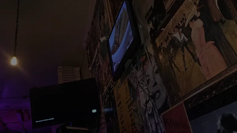 More indoor seating and neon sign