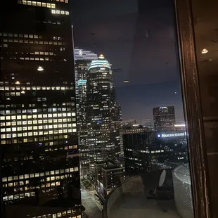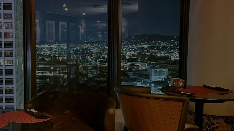 To start this is a beautifully designed hotel in the heart of DTLA. It is known to be featured in several films, including True Lies (1994) and if you are too young to know that movie then I will help you out and mention Queen herself Rihanna also filmed her Savage x Fenty Vol 3 here. Yes hunnnaaay you are walking the same floor where the Queen herself did the damn thing. I digress... Not sure if it was just a slow weekend, but we easily found meter parking outside the hotel on a Sunday just before 9pm. We entered a busy lobby, perhaps an event nearby. There was plenty of seating. We made our way to the RED elevator that would take us to the level we needed to go for the Lounge. It was relatively empty but perfect for our group of 6. We were quickly seated without reservation, ordered our cocktails along with a few appetizers. The space is dim, creating an intimate and cozy setting. We were in awe of the views. We would sip our drinks, look at the views, have a conversation, and look at the views again and to our surprise would face another part of the city. You couldn't feel the floor move.We only came for drinks but the views were so immaculate that we decided to get some appetizers. Between our group we order pork belly bao, pork steamed dumplings, chicken pot stickers all which were delicious and great shareables. It's a cool experience to have drinks with such beautiful views. Do yourself a favor and check it out. Go at night. That's when the city views are the best.