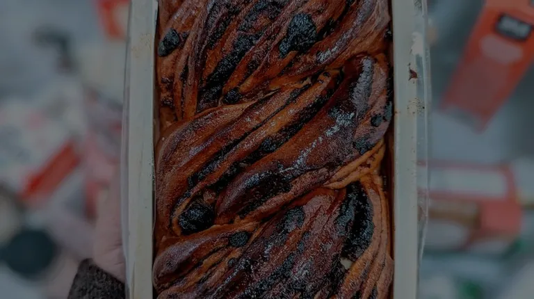 Babka. Chocolate layers and raisins.