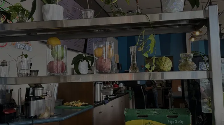 Warm and inviting local cafe. Clean andFresh feeling on the inside and run by a sweet couple who I assume own or are the proprietors. 5 stars!Food and drink options for a non-boozey brunch with plenty of coffee, tea, smoothie and fresh press juices. The food options are fast and fresh and offer breakfast all day which I love. Sandwiches. Burritos. Bagels. Breakfast combos. Avocado toast all make for a yummy start to the day. We had a breakfast croissant, 4 stars with coffee and a blueberry smoothie with whey protein, 3 stars. $38 with tax and tip. Locals with their friendly small dogs came through for food and coffee and were welcomed with a friendly smile and offers of treats for the well-mannered pups. Friendly and fast service made this even more unique. Seating options run from a large banquette for 6-8 down to a small window facing bar top for singles.