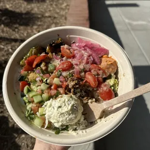Omg!! If you haven't tried this place you need to go... now! Healthy and fresh Mediterranean ingredients make up a tasty bowl. The service is amazing! Plenty of places to eat there, inside or outside. Enjoy!!
