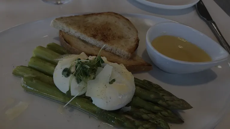 Ricotta Pancakes Poached eggs with asparagus and hollandaise sauce