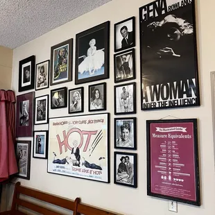 Hollywood star photos right above the kitchen