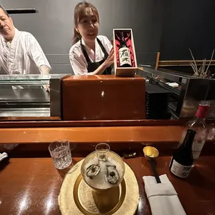 I had one of the best omakase experience in my life yesterday. I can tell Chef Hilo is passionate about his craft, he is truly an artist behind the sushi bar. Even his classic music that he plays in the background matches the tone and atmosphere of the omakase dinner. It was an epic meal start to finish and the price was one of the best parts. He explained all of the fish thoroughly and I learned so much. I love the intimate setting where we asked Chef Hilo anything and he was so open and knowledgeable not just about his food but the restaurant industry that he's been in for a long time. Our first course was a trio of oyster and scallop and from love at first bite, I knew it was going to be a great night ahead of us. 18 courses for $150, you cant beat that in all of LA. I will definitely come back and bring all my friends and family to experience this one of a kind omakase.