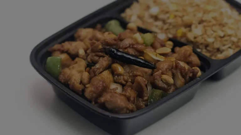 Sauteed chicken with assorted veggies stir fried in Hoy's Kung Pao sauce topped with roasted peanuts.One Choice of Meal with One Choice of Side.