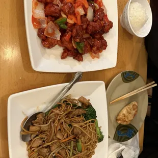 Beef Broccoli Beef, Fried Rice, Black Pepper Chicken.