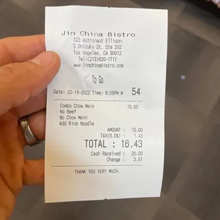 The chinese food, jajangmyum and jins special shrimp was delicious.Its funny bc we ordered the wings app and it came after our entrees were served.But either way I would not recommend it.It was dry and tough.And the skin seemed old and thick.I thought what a great spot after Jins cupsleeve event. And even the address has the word astronaut!!Anyways....iykykI think it might be hard for me to come back to this spot bc they dont validate anymore.Parking needs to be better so i can spend more time in this plaza and spend money...Parking is $2.50 per each 15mins.Check lots nearby for better flat rates.I wonder if the $5 one is still open and the one by the "mall"? Its been so long