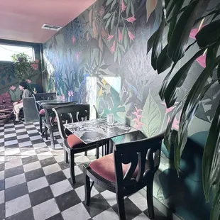 This cute wine bar has a great night ambiance! There are both outdoor and indoor seating options. I would recommend indoors for the candlelight aesthetic. I appreciate that the music is not too loud. There are street parking options, but there is valet if you need it.Food options are vegan! Tastes great, even for someone who doesn't normally prefer vegan food. There is a diverse selection wine. My group had a fun time trying different types. It is easiest to order drinks and food at the bar, but sometimes staff will come up to your table and ask you.Staff are friendly!Definitely a great place for a date night, or to kiki with some friends. I would come here again!