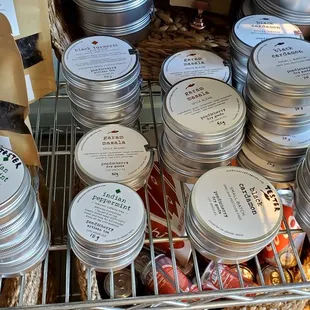 Dry goods, sauces, pantry staples.