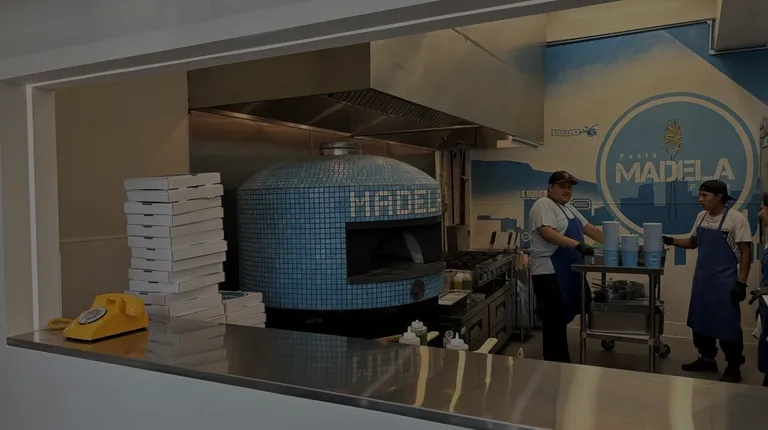 Inside feels like Mykonos. Unmatched vibes for a casual neighborhood pizza pasta joint.