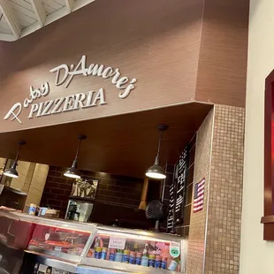 It is located on the east end inside the Old Farmer's Market (on The Grove side). The market is like a giant food court with a few other shops sprinkled in between. The design and appearance of this pizza spot make it seem finer than it is. The signage and colors are excellent right down to the font type used. They also have a nice open oven with a beautiful eye-catching flame. The pizza served whole or by the slice is good for what it is and where you are. It's fresh, satisfying, and gets an A-okay. I love pizza so it's great for a quick bite to eat while window shopping. The area especially on the weekends is usually very crowded with people eating all the types of food offered in the maze of booths. There are some chairs and tables just opposite the ordering counter or if full, you can walk and find a seat close by. Service while ordering is fine and friendly.