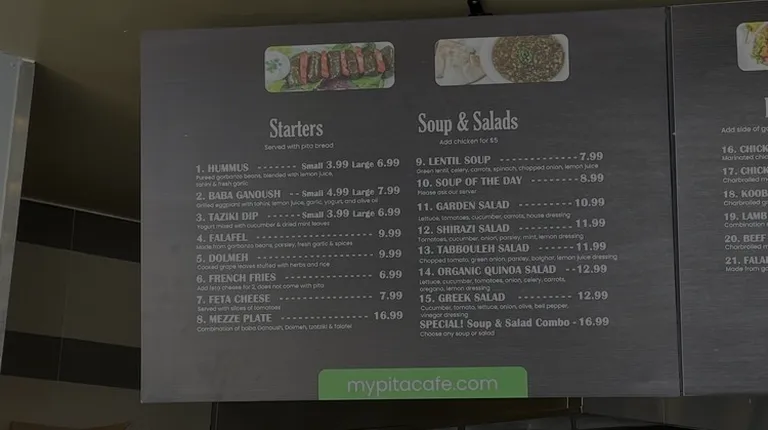 I had the chicken kabobs and the chicken was cooked perfectly- very juicy and flavorful. The plate also came with hummus and pita bread and it's a very creamy hummus. One of the better Mediterranean restaurants in the area. Not too expensive either. I would recommend Pita Cafe if you're in the area