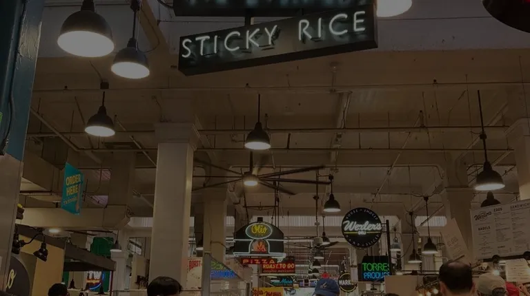 Sticky Rice in the center of the hustle and hustle of Grand Central Market absolutely delivered! We ordered the Gai Yang - a Thai BBQ chicken with papaya salad and sticky rice - and it was incredible. The chicken was perfectly grilled, tender, and packed with flavor. The papaya salad had the perfect balance of sour, spicy, and fresh, making every bite so satisfying. And of course, the sticky rice tied it all together. So much flavor in one dish!Also had a Thai iced tea, which was rich, sweet, and had just the right amount of spice. A perfect way to cool down between bites.We were able to snag some seats write in front of the grill which was a cool experience to witness the staff freshly grilling our chicken, such a vibe. They were so kind and treated us to a Vday chocolate as we waited. Highly recommend if you're craving something bold, fresh, and packed with authentic Thai flavors. My favorite meal this trip!!!