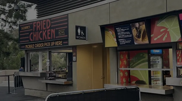 Skip this unless you won't be disappointed by mildly flavored chicken tenders. I was so excited to try the Spanish Fried Chicken but gosh were my wife and I disappointed. We are big fans of Ms. Goin's cooking at her restaurants and knew this would be a notch below restaurant quality. The chicken lacked flavor. The chicken tenders were breast meat which is tougher and less desirable then dark meat for us. The cornbread was so dry and dense that I almost spit out my mouthful. The staff were attentive but not friendly. Next time we are at the Hollywood Bowl I'll just pick up a turkey sandwich at the Marketplace.
