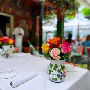 We came for reservations to this famous LA spot and enjoyed the beautiful displays of roses of assorted colors, artwork throughout and the brightly tailored waiters with flowery ties Seers were markedly uncomfortable with hard backs and limited cushion for the buttocks Waiters were overly attentive and the menu was diverse with specials of the day and the regular menu. Heard much of the crab cakesOrdered themAs appetizer. Within les than 5Minutes overly browned and mildly heated circular crab cakes were delivered. These areNot Maryland crab cakes and had a disturbing brownish interior which potentially was from the poor lighting. They were somewhat favorable but mostly stringy crab and nothing resembling a delicious eastern seabird crab cakeThankfully the roasted branzino and shrimp was a different story comprising a beautiful glazed buttery sauce on a perfectlyRoasted fish. Delectable Thankfully the mushroom and asparagus risotto was an overfilled vegetable filled risotto with a brownish sauce but tasted flavorful with hints of garlicSomeone ordered chicken enchilada and a kale salad nothing to write aboutI ordered an Arnold Palmer and received ice tea Overall an experienceMore of environment than food so it received from this eastern seabird NJer a fair scoreI suggest the chef learn how to make crab cakes with lump crab and not stringy mealy crabmeat