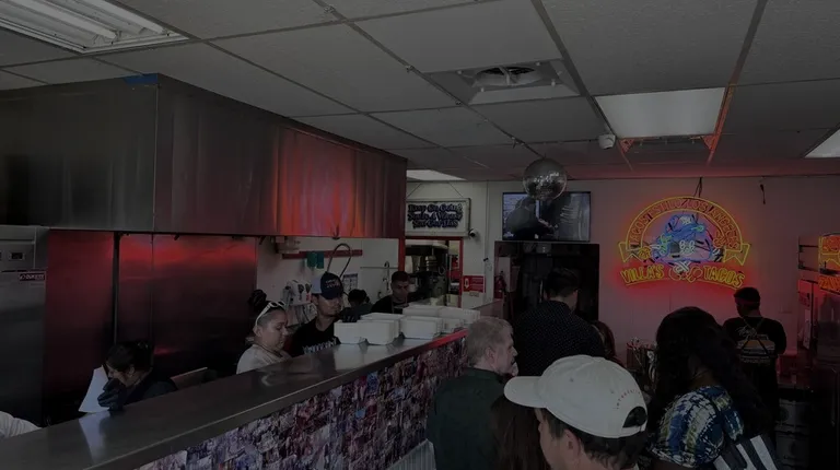 Really good tacos with homemade blue corn masa tortillas, served in a very small space, with long lines and limited seating. Located in a non-descript strip mall anchored by a Grocery Outlet, Villa's Tacos is a must-stop for taco enthusiasts in the LA area. It opened it's first brick and mortar in the Highland neighborhood of LA in 2022, and just recently opened a second location in the Grand Central Market in DTLA. A friend and I stopped by on a Sunday afternoon, arriving about 5 minutes before they opened at noon. We were the 5th group in line, and by the time they opened the doors, there were quite a few people behind us as well. Inside, it's a very, very small storefront, with just enough space for probably 5 people standing customers at one time. You order (super friendly cashier) and pay (through square), then exit and wait outside. Got 4 queso tacos (chicken ($4.5), asada ($4.5), pork chorizo ($4.5), and house special (weekend only) barbacoa ($5.5). Also got a Mulita (same as a taco but like a sandwich with two tortillas) with barbacoa ($7.50). Everything is a la carte.They call out your name (not that loudly) from the inside, so important to be very close to the door to hear (they do seem to fulfill the orders in sequence so useful to remember who was in front of you in line...once they get their food, you are next!).At this point, it was pretty crowded inside which usually makes me hesitate, but it's amazing how hearing your name called, makes you think "I need to be there", and letting you cut through. It's an assembly line operation, with people making the homemade blue tortillas, and then each step adding more ingredients, ending in the wrapping of the product (all are prepared to-go)...at which point they call out your name. They were missing an item that I had paid for (which I had to notice and mention, making them have to make it quickly), appreciated not being told to step aside, even though it was very busy. It's a small detail, but important.All food is put in compostable paper containers, open faced. They really mean for you to eat the tacos immediately, but I had no choice by to bring them home. I ate them soon afterwards (still warm), and I thought they were good. As mentioned by others, the salsa is very spicy (a little goes a long way) and very onion centric (they only give you the tiny plastic ramekins once you pick up your food to encourage people not to pre-get their salsa). The guac added to the tacos were very good. The tacos had about the same amount of meat as the mulita (so stick with the tacos). I also learned that barbacoa can be pork (just assumed it was beef...no signs ever stated what type of meat it was)...it tasted like good carnitas to me, but not worth the upcharge over beef. They are known for their crusty cheese lattice (if you order the queso taco)...mine definitely had it but didn't add much. And finally, I learned (again) that I much prefer a good Sonoran flour tortilla, over any sort of masa tortilla...which explains why the blue tortilla didn't add that much to my food experience.