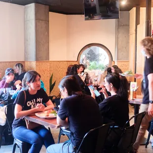 Needed a quick dinner before a dodger game and Vui Ve served! The dining room is on the smaller side but staff were helpful to rearrange to accommodate our party of 5. We had the chicken salad, spring roll sampler, bahn mi in chicken and pork, and brisket pho. The spring roll sampler includes one of each: chicken, shrimp, and pork. The pork sausage was surprisingly my favorite because I'm not a huge fan of pork. It was crispy and flavorful. The peanut sauce was delicious. The spring roll are cut in half so it's shareable. Also filling on its own. I wonder if dipping in pho broth would amplify the taste much like the broth they offer with bahn mi for dipping.I keep forgetting to use my Yelp check in offer but next time!