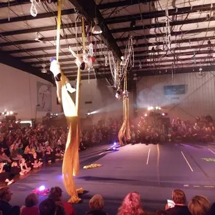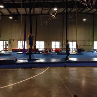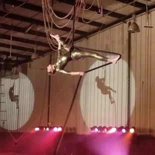 I've only ever gone here as a spectator. They occasionally put on shows featuring their students and instructors doing amazing feats up on rings, silks, suspended ladders, and other gear. It's a tremendous amount of fun. There's a lounge on the floor below the gym that has a full bar. Get yourself a beverage, go upstairs, and watch the show. If you have a chance to go, you should go. It's a lot of fun.