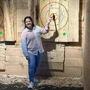 Always a good time. This is the second work outing we have had here for team building. It allows your team to compete against each other in a fun environment. They also serve beer and mixed drinks. What could be better than sticking it to your fellow workers with a cold beer and a sharp ax. Only suggestion would be to change out some of the targets a little sooner, or move the group to a different lane where the board isn't chewed up so bad. Overall, a fun experience. October is a discount month, so swing by and throw some axe and save some green.