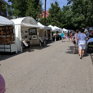 This is my second year to attend this art fair and I will make it an annual visit. Although small only about 2 blocks it has quality artists and their wares. There is a true mix of artist mediums. There are plenty food options from food trucks and live music. Additionally there is plenty of seating along the 2 blocks if you want to sit and rest and people/dog watch. Yes it is dog friendly and there were plenty of pooches in attendance. Plenty of street parking within a couple of blocks of the festival. A plus is getting to look at the lovely old homes that line the street as you puruse the art. Fun outing. I highly recommend. And I found a great piece of wood art for my newly renovated bathroom