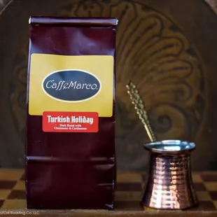 a bag of coffee on a table
