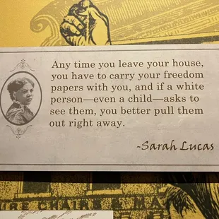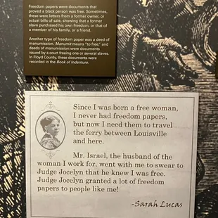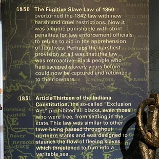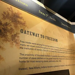 The place is free and self paced. During my visit there was a quilt art. There was also an Underground Railroad exhibit. The exhibit was about the slavery Underground Railroad in Louisville and in New Albany. It was interesting and an interactive video.