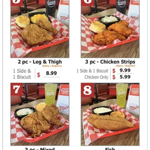 3 pc chicken strips, mash potatoes, biscuit!