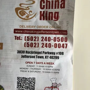 Typical take-out menu that is the same for all these Chinese places. Food was great as always. Much better than any Chinese Buffet.