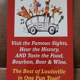 This is a must see and do activity for a trip to Louisville. My party of 4 went on our first day and it was a great way to get acclimated to the city. We stopped at the Louisville Slugger facility, Churchill downs, a candy store across the river in Indiana.... plus several shorter stops.On board we were served small samples of beer, wine and alcohol- it's not enough to catch a buzz over 3 1/2 hours so arguably you could drive home after. The food samples were awesome- my favorites were the bourbon sausage, cheese wonton, hot brown pizza and bourbon doughnut. Leslie and Paula also accommodated my gluten free husband which was very kind. I also became a fan of maple bourbon on this trip. You won't be stuffed after this trip but not starving after so expect to grab a late lunch if you are doing the AM tour.The tour is fast paced and educational and a lot of fun. At $64/pp I thought it was priced well and an easy way to see a lot in a short amount of time. I absolutely loved it.