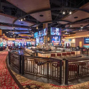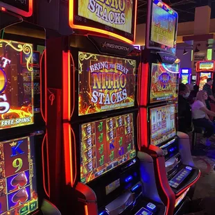 This is a casino with no table games and 100s of the same exact type of machine. No novelty at all. No lightening link, no dragon link. There is fire link but that's about the only mainstream game you'll find here. Soda machines present which are nice, but the gaming itself is not great. Atmosphere is Ok since there is a separate smoking section. Go to Caesar's in Indiana for a better experience.
