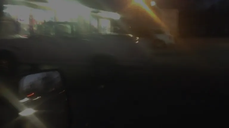 a blurry view of a street at night