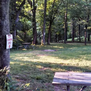 11 Primitive camping spots. All have good shade. Three are in the woods.