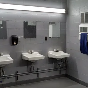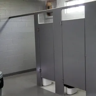 Bathhouse and large garbage container.