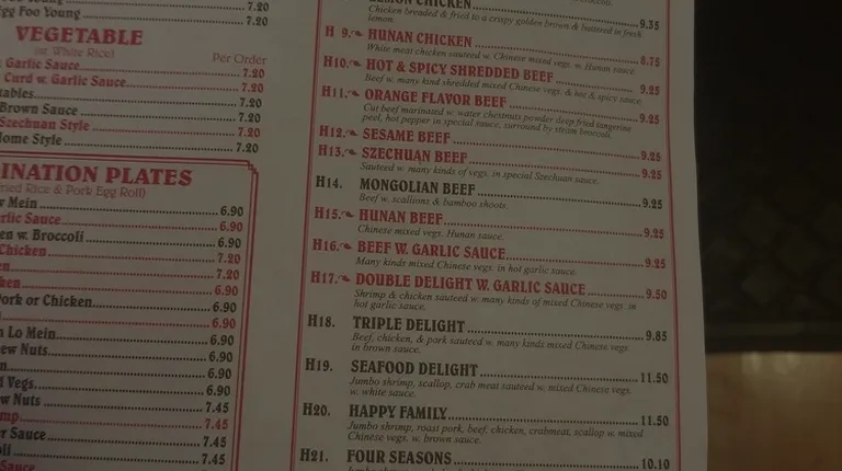 a menu for a chinese restaurant