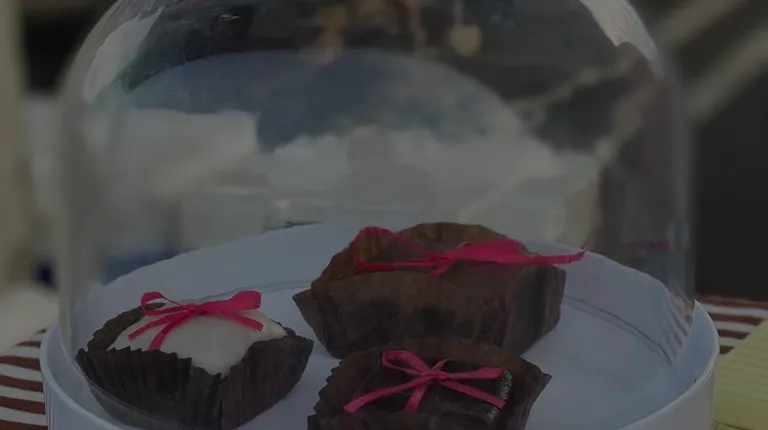 people standing under tents