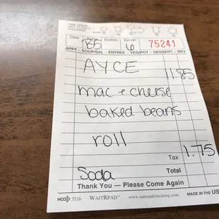 a receipt for a restaurant