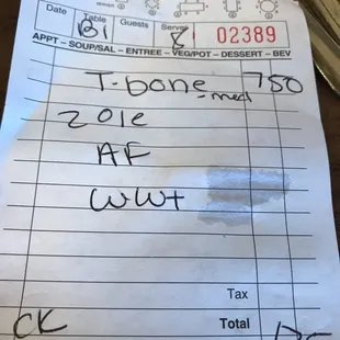 the receipt for the restaurant