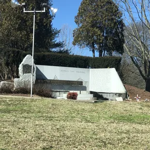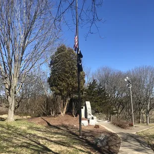 There's a neat little war Memorial that is located in mcneely Lake Park the one over by one set of playground equipment and the lakes. We know is divided into sections this one has more of the trails in the walking part and this is up on the hill and it has a nice little dedication for the Korean War