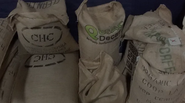 a stack of coffee bags