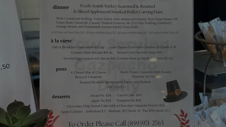 We stopped in for lunch and what a delicious place!! The menu is written on the back wall and they have something for everyone. I tried the gazpacho which was a nice portion for a side with my sandy. There is an up charge but worth it. The gazpacho has a nice balance and I could taste the green pepper. I order a grilled pimento cheese sandwich and it was creamy, crisp, flavorful flavorful and so satisfying. The chicken salad is also a huge hit!! However, you better save room for the amazing homemade chips!! So delicious and such a treat!! This place is great for catering as well!