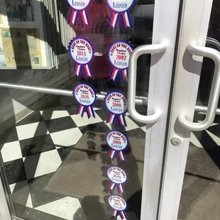 Magee and Hubby standing behind one of their cases 2013. You can see the Transparent Tarts and Pies in the right case.