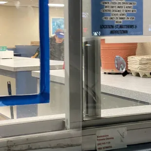 Woman mopping and handing my food! At least the unused lobby is clean. Right now the lobby is shut down you have to use the drive though.