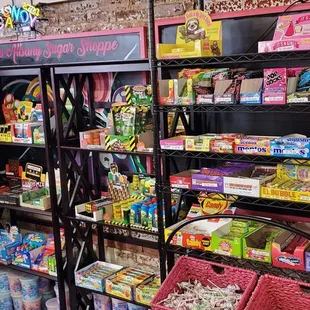 Look for the pink awning & pink doors to find this cute candy shop! There is free parking lot on the backside that makes it only a few steps away.For the month of November they have $2 macarons! I tried a few flavors but the birthday cake was the best, don't miss it! They also had a huge variety of chocolate covered Oreos and other chocolates. There was a lot of prepackaged candy as well as candy by the pound.I got 3 macarons, a cake pop, and 3 boxes of specialty movie theater candy and kept it under $20, can't complain at all! The cashier was kind and let me take my time and mosey around. I'll be coming back to try candy by the pound but also for more $2 macarons!!!