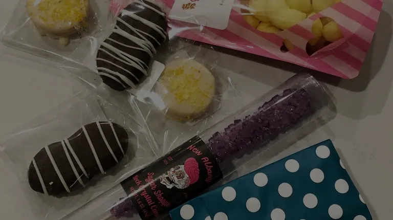 This little spot is purely magical, I'm so happy there's a go-to candy store now in New Albany. My mom and I stopped in on a Saturday afternoon and it was packed, almost too packed! We got a sample box from the handmade case consisting of cherry truffles, the coconut truffles, and bourbon balls, along with some white chocolate dipped lemon Oreos, chocolate dipped Nutter Butters, and chocolate covered orange cream gummy bears. Every chocolate piece was DELIGHTFUL! They also were giving out free samples of a trial rum cake ball they're working on, and lemme tell you, it was strong! And delish!! (Yes, add those to the case!) Aside from the handmade chocolates, we also picked up a bag of sanded lemon drops and a purple rock candy, because who can resist a rock candy? The lemon drops are sooo good! Tart on the outside, sweet on the inside. Mmmm, yes. Will definitely stop here often, but I'm hoping they find a way to reorganize the store to make it a bit easier to shop when other customers are there. It's truly small and cramped. The space is cute though, it's great!