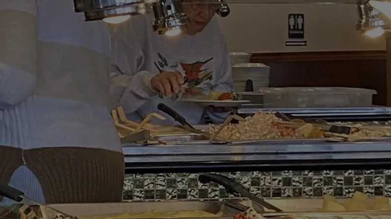 a man standing in a buffet area