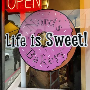 a pink donut with the words life is sweet on it