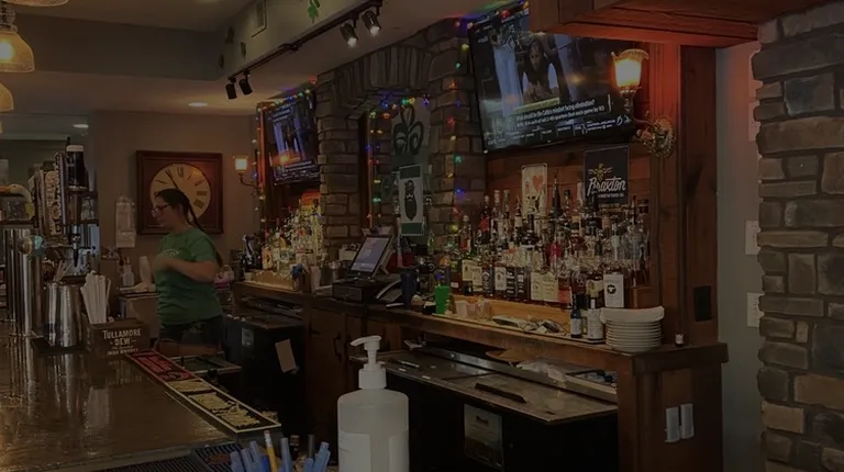 a bar with a stone wall